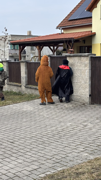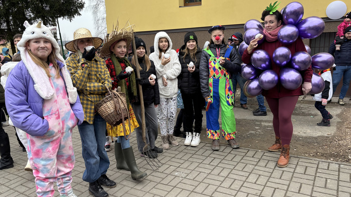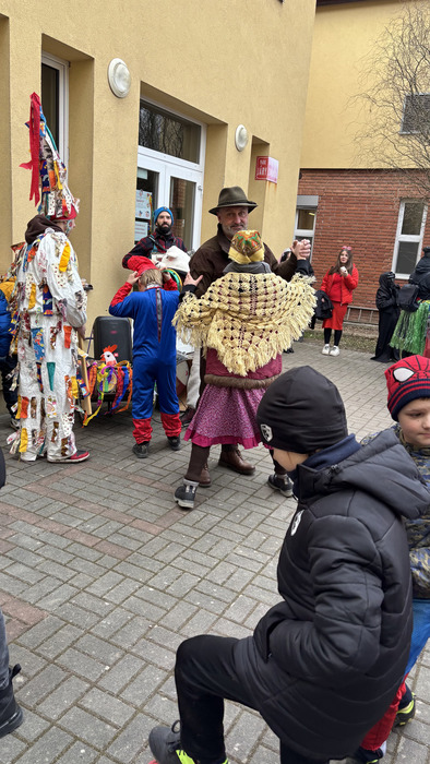 V sobotu 8. 2. se školní dvůr proměnil v centrum masopustního veselí. Žáci, učitelé i rodiče se oblékli do pestrobarevných masek a společně se vydali v průvodu obcí. Nejdříve pan Laufr a paní Laufrová požádali místostarostu o povolení masopustního průvodu obcí a pak už nic nechybělo, abychom si masopust užili. A samozřejmě nechyběli ani tradiční koblihy. Po průvodu čekaly na návštěvníky zabijačkové speciality, které pro ně připravily naše paní kuchařky. Děti si užily tradiční masopustní hry. Celá akce se nesla v duchu tradic, radosti a sousedského setkání.