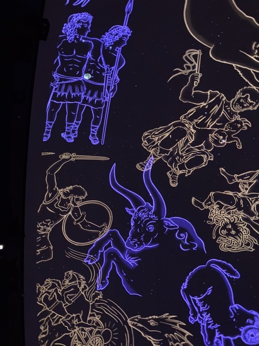 Pak se nás ujal pan Jan Spratek, který vytváří vzdělávací programy o vesmíru a kosmonautice a přednáší po celé České republice. My ho známe z online přednášky, kterou pořádal pro žáky naší školy. Odešli jsme do velkého sálu Cosmorama, kde se promítá na velkou kopuli o průměru 23,5 metru a vzniká tak prostorový obraz s velkým rozlišením. Nejprve jsme viděli aktuální postavení hvězd a planet na obloze a také jsme se dozvěděli, co skutečně znamená souhvězdí. Byla to nádherná podívaná. Nakonec jsme zhlédli film VOYAGER, který popisuje cestu dvou sond, které byly vypuštěny v roce 1977, pořizovaly snímky planet a odesílaly signály na Zemi. Tyto sondy již opustily naši planetární soustavu a putují v mezihvězdném prostoru, nazpět se nikdy nevrátí. Pro mimozemské civilizace nesou vzkaz, který je nahrán na pozlacené LP desce. Film byl velmi pěkně zpracovaný a zajímavý.