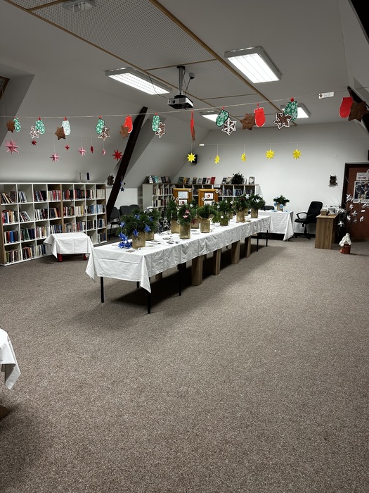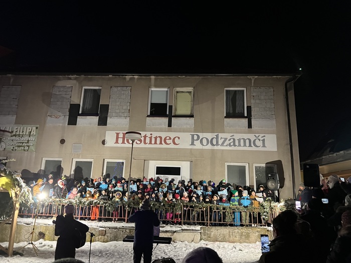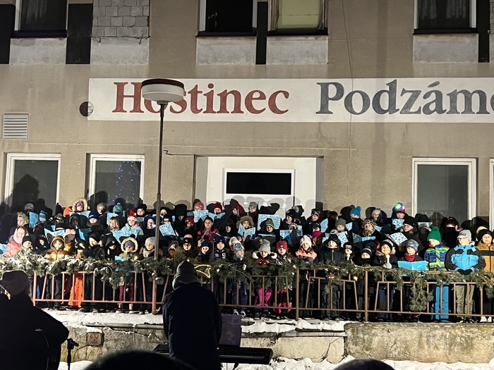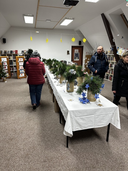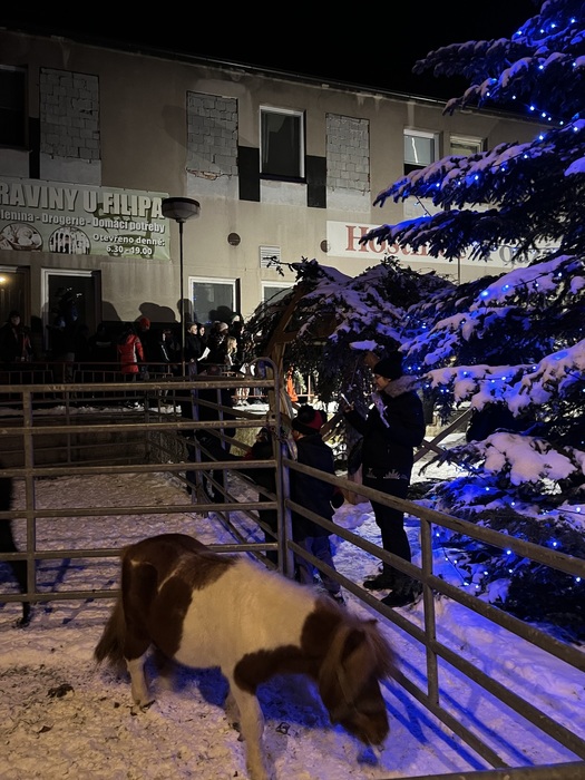 Po dlouhé pauze, vždyť naposledy jsme tuto akci mohli uspořádat v roce 2019, jsme připravili tradiční vánoční jarmark. A byla to velmi milá akce! Vánoční vystoupení našich dětí mělo takový úspěch, že mladí umělci museli přidávat!  Živý betlém, prodej vánočního občerstvení – štrůdl, čaj i svařák od našich paní kuchařek, párky v rohlíku a klobásy od hasičů, prodej školní vánoční keramiky, výstava vánočních hvězd v mnoha podobách od našich dětí i perníky a origami z dymokurského klubu důchodců… Vánoční atmosféru zcela jistě podpořily všude znějící koledy, stylové stánky a také čerstvý sníh a mrazivé počasí.
