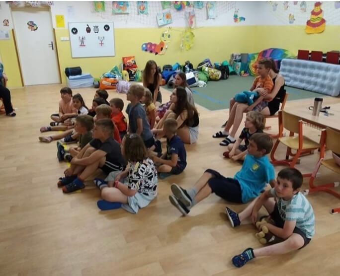 Úvod > Základní škola > Fotogalerie ZŠ > 2021-2022 > Celoškolní akce > Společné spaní 1. a 9. třídy