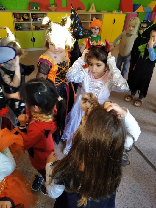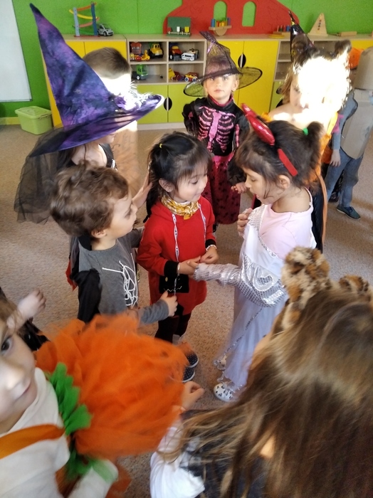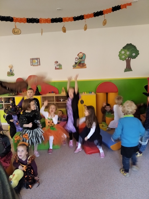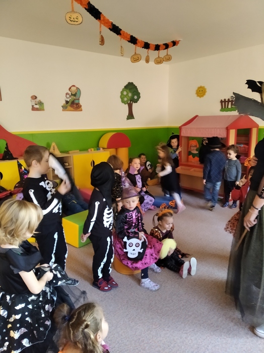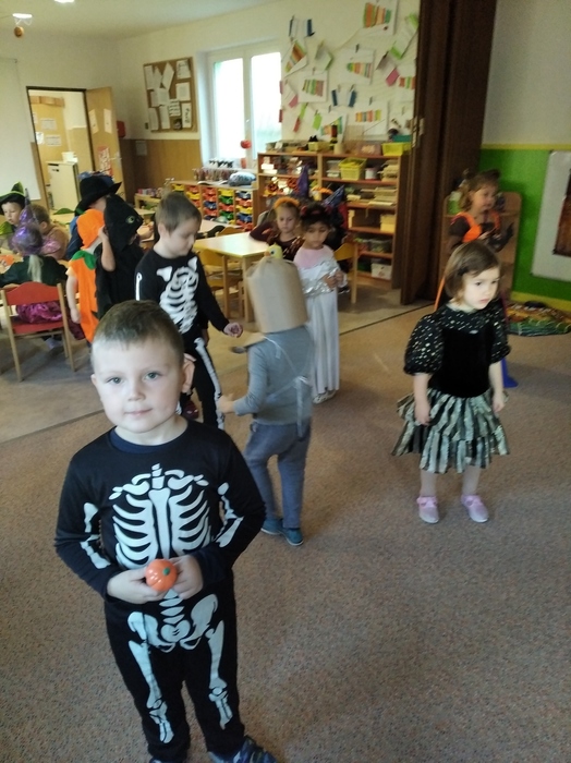 Oslavu svátku jsme si 25.10.2022 v kostýmech (dopoledne plné her, diskotéky, hledání pokladu a koledování po obci) moc užili.