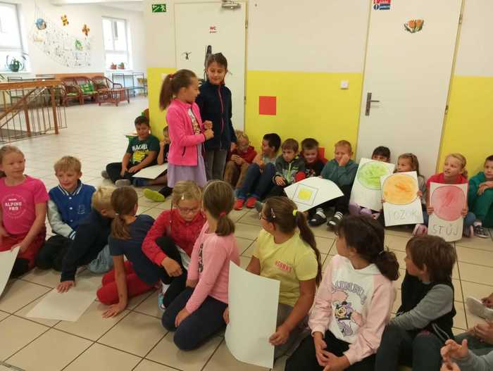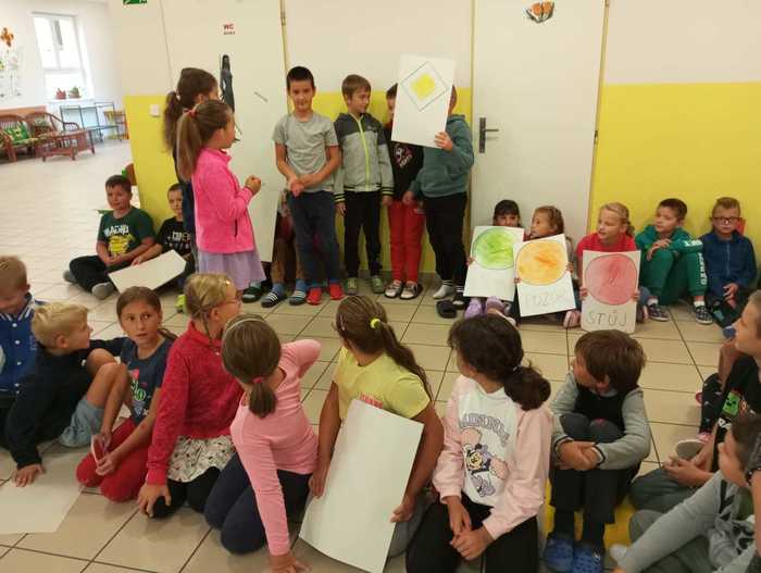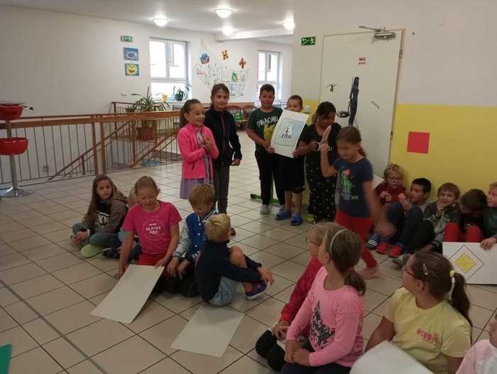 Třeťáci ukázali svým spolužákům, jak chodit bezpečně do školy a jaké už znají dopravní značky.