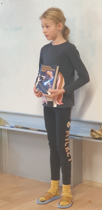 Už jsme se v naší třídě dočkali první prezentace a tedy i první knižní odměny. První nadšenou čtenářkou, která přečetla 4 knížky a jednu z nich před tabulí odprezentovala, se stala Anežka Hordinová.